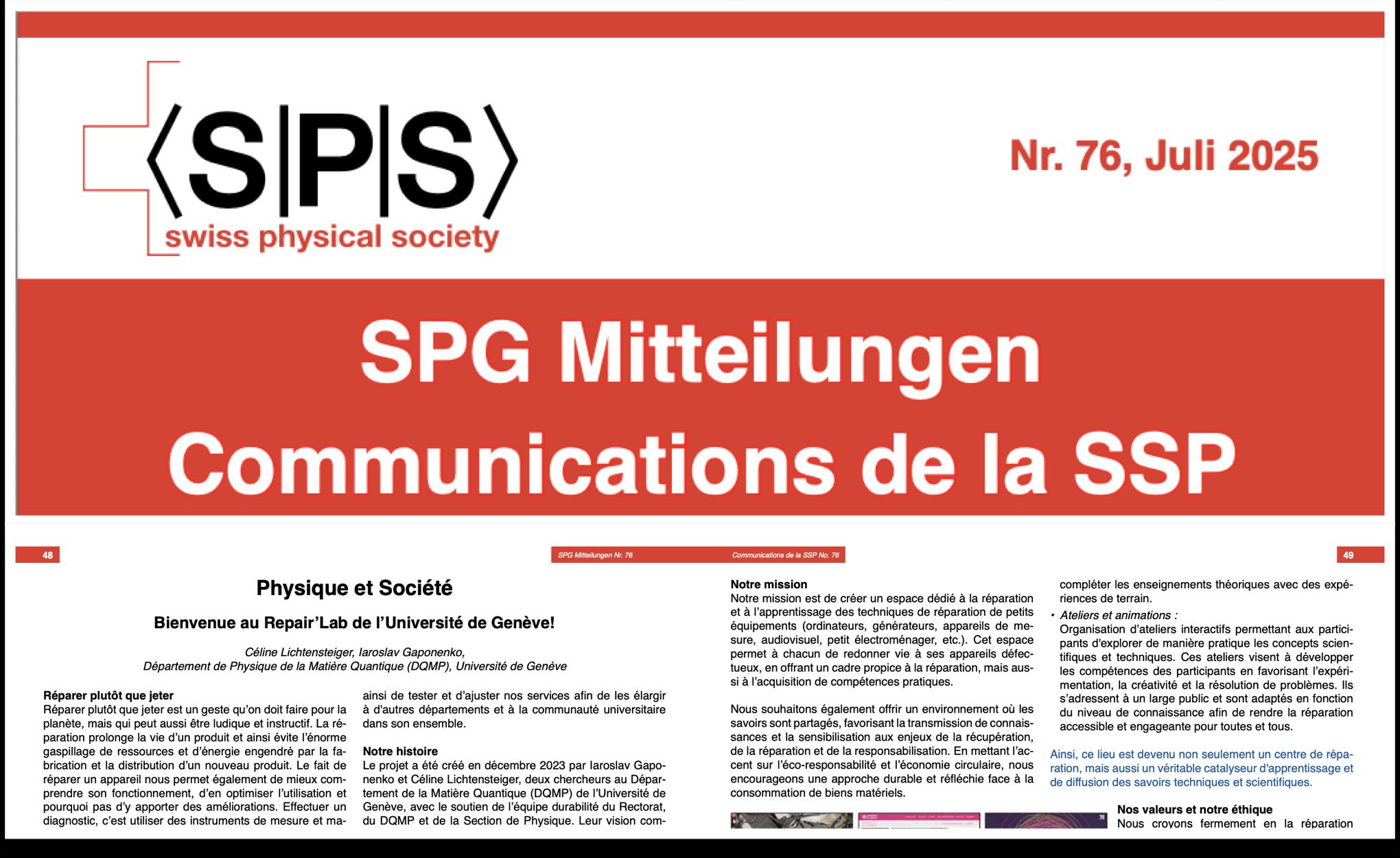 Le Repair’Lab dans le magazine de la Société Suisse de Physique